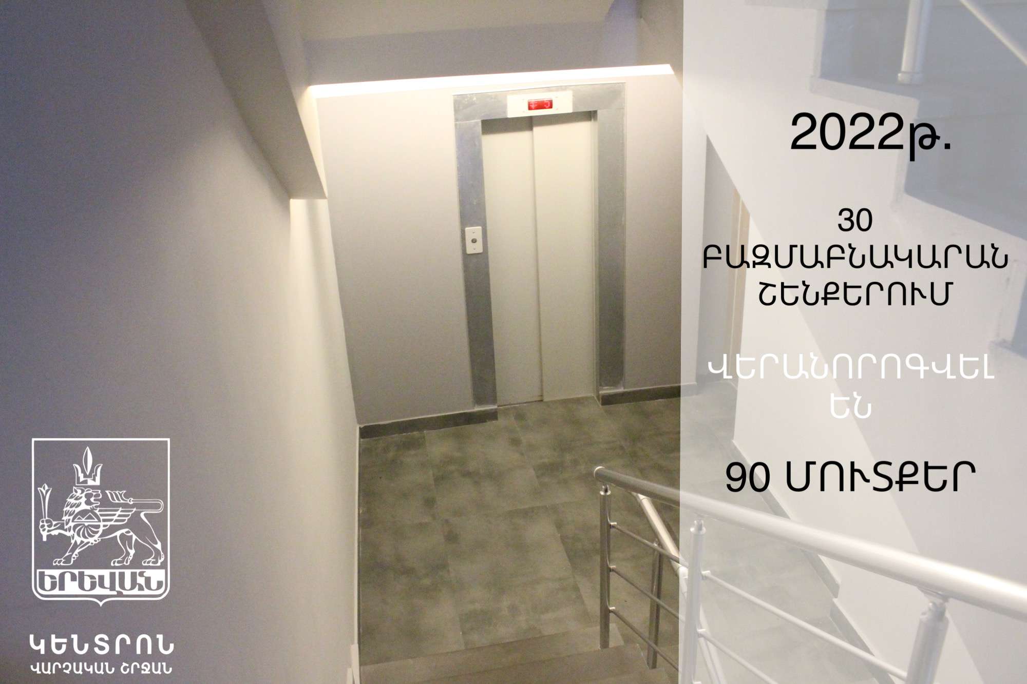 Երևանի Կենտրոն վարչական շրջանի 30 բազմաբնակարան շենքերում իրականացվել են թվով 90 մուտքերի վերանորոգման աշխատանքներ:
