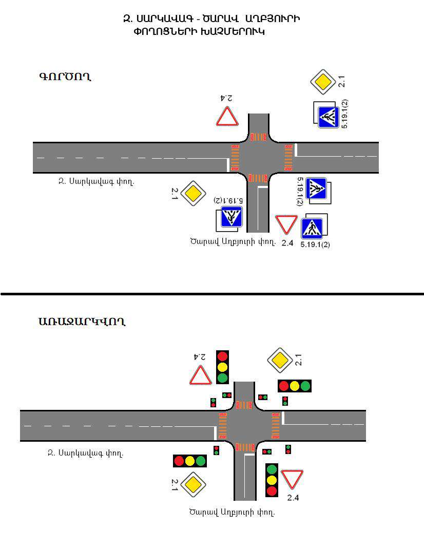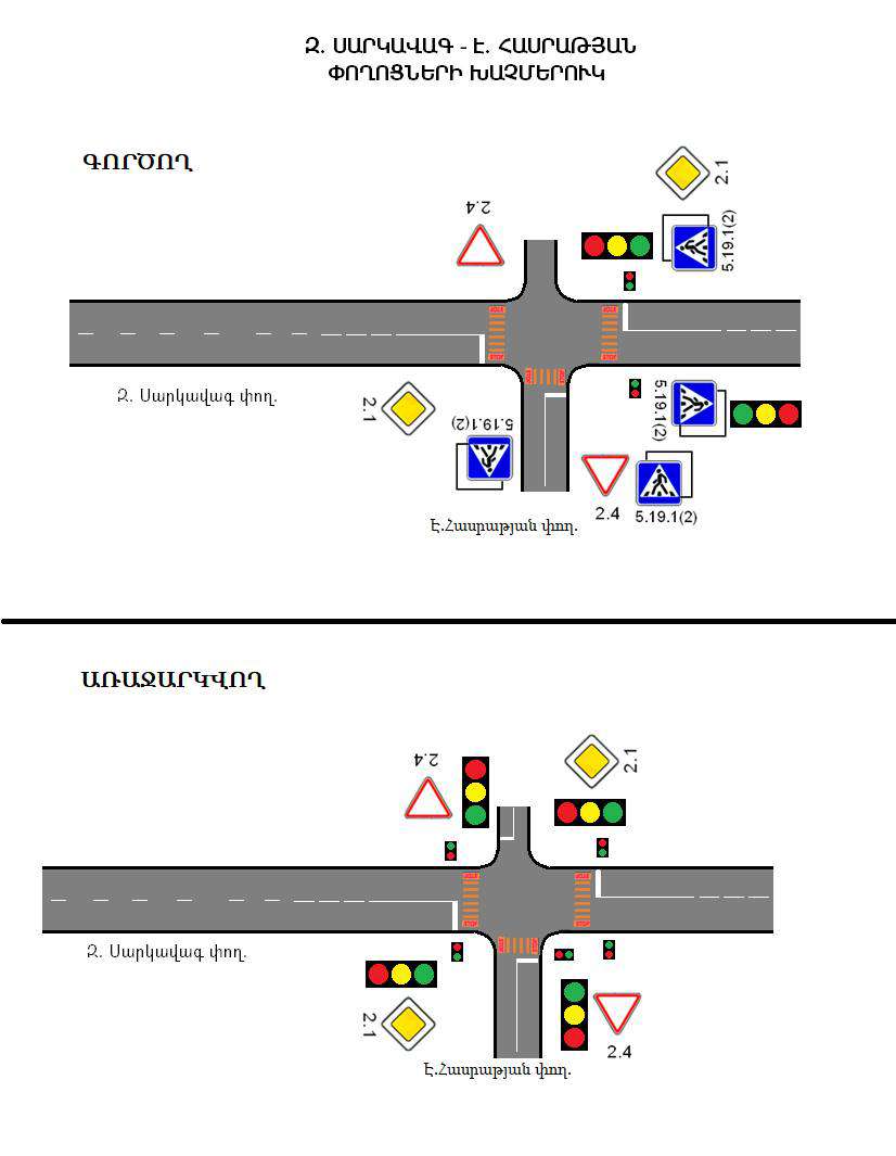 Վերոգրյալով պայմանավորված՝ նշված խաչմերուկներում երթևեկության կազմակերպումը կկարգավորվի լուսացույցներով։