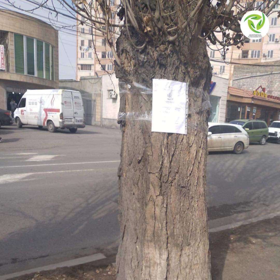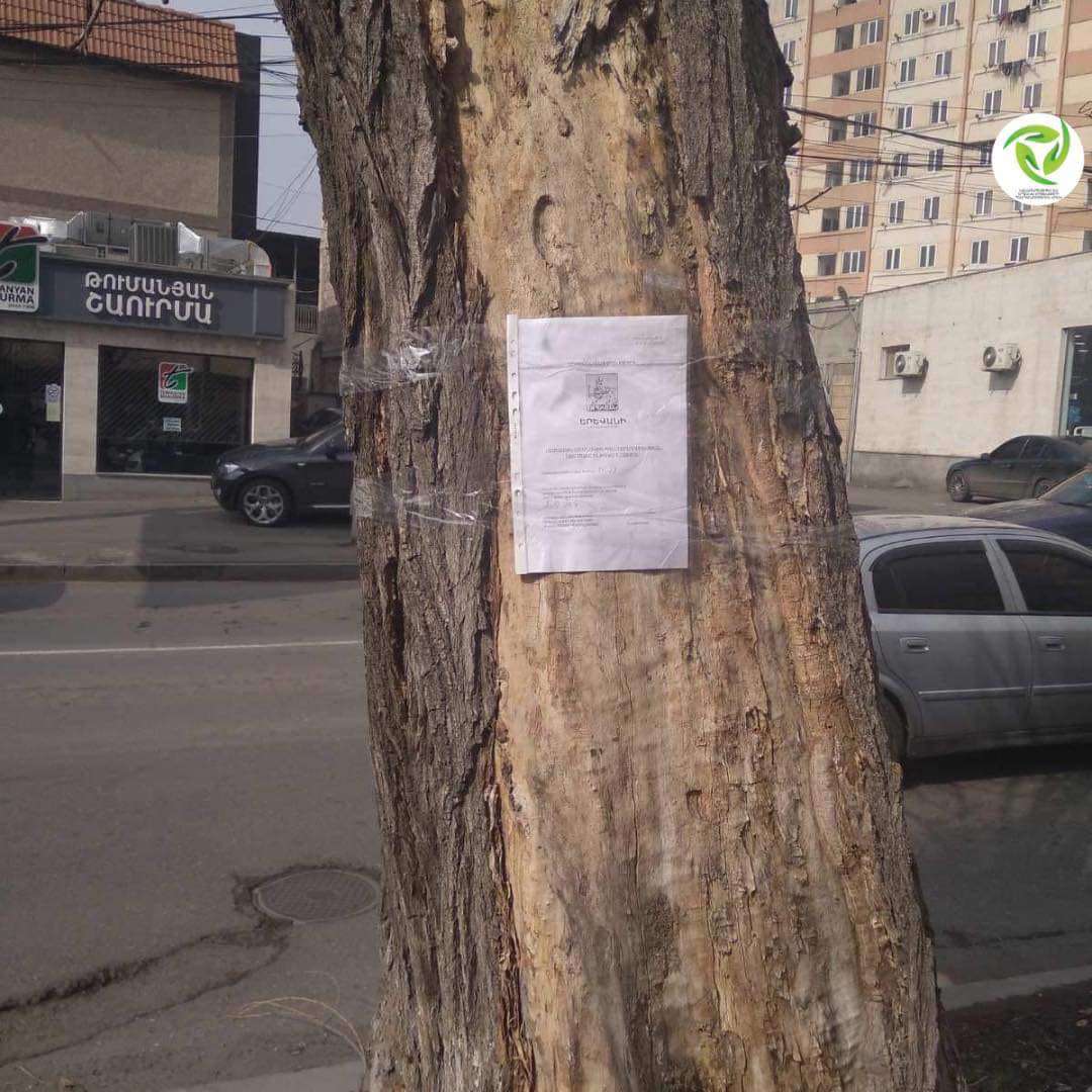 Երևանի քաղաքապետարանի «Կանաչապատում և շրջակա միջավայրի պահպանություն» ծառայությունից տեղեկացնում են, որ հատման և փոխարինման ենթակա ծառերի վրա փակցված կլինի ծառահատման հաստատված գրություն։