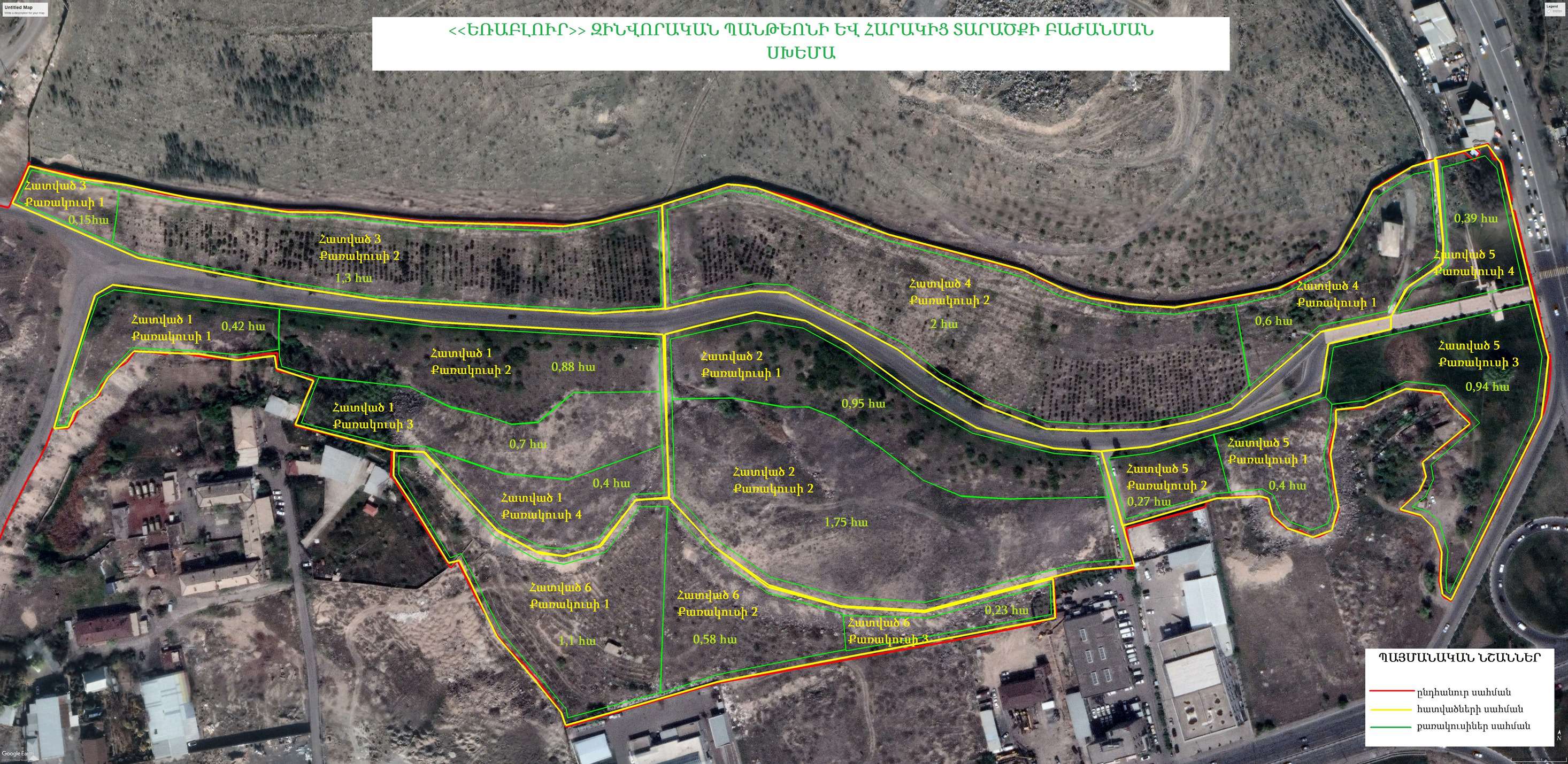 Հիմք ընդունելով տարածքի ռելիեֆի բազմազանությունը և պրոֆիլի կտրտվածությունը, ապահովելու համար հողակլիմայական և բուսաաճման պայմանների միատարրություն, տարածքը բաժանվել է հատվածների։