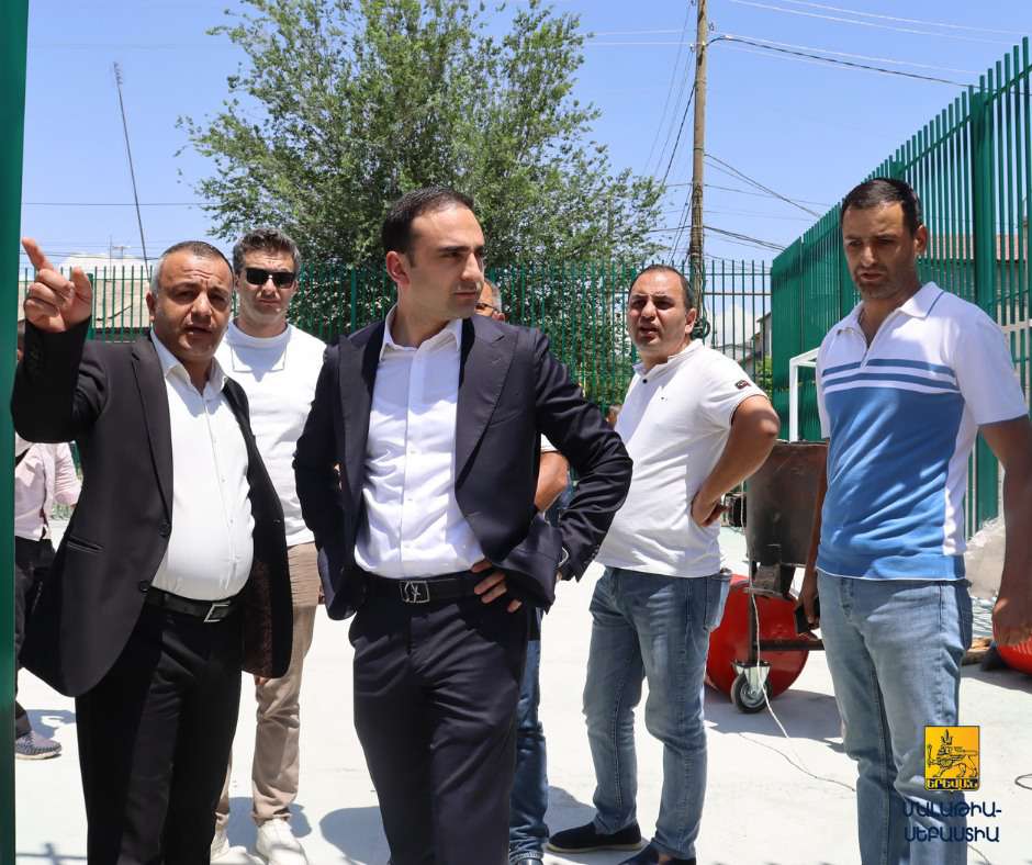Այնուհետև նրանք այցելել են N 121 դպրոց, որի հետնամասում կառուցվող ֆուտբոլի դաշտը ժամանակակից և նոր չափորոշիչներով է կառուցվում: Խաղադաշտը կունենա միաձույլ ռետինե հատակ նաև կտեղադրվեն արտաքին լուսավորության հենասյուներ: