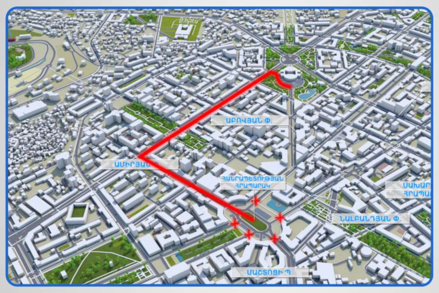 ՀՀ պետական խորհրդանշանների և ՀՀ Սահմանադրության տոների համատեքստում անցկացվող միջոցառումներով պայմանավորված՝ հուլիսի 4-ին և 5-ին ժամանակավորապես կփակվեն մայրաքաղաքի կենտրոնի առանձին փողոցներ: