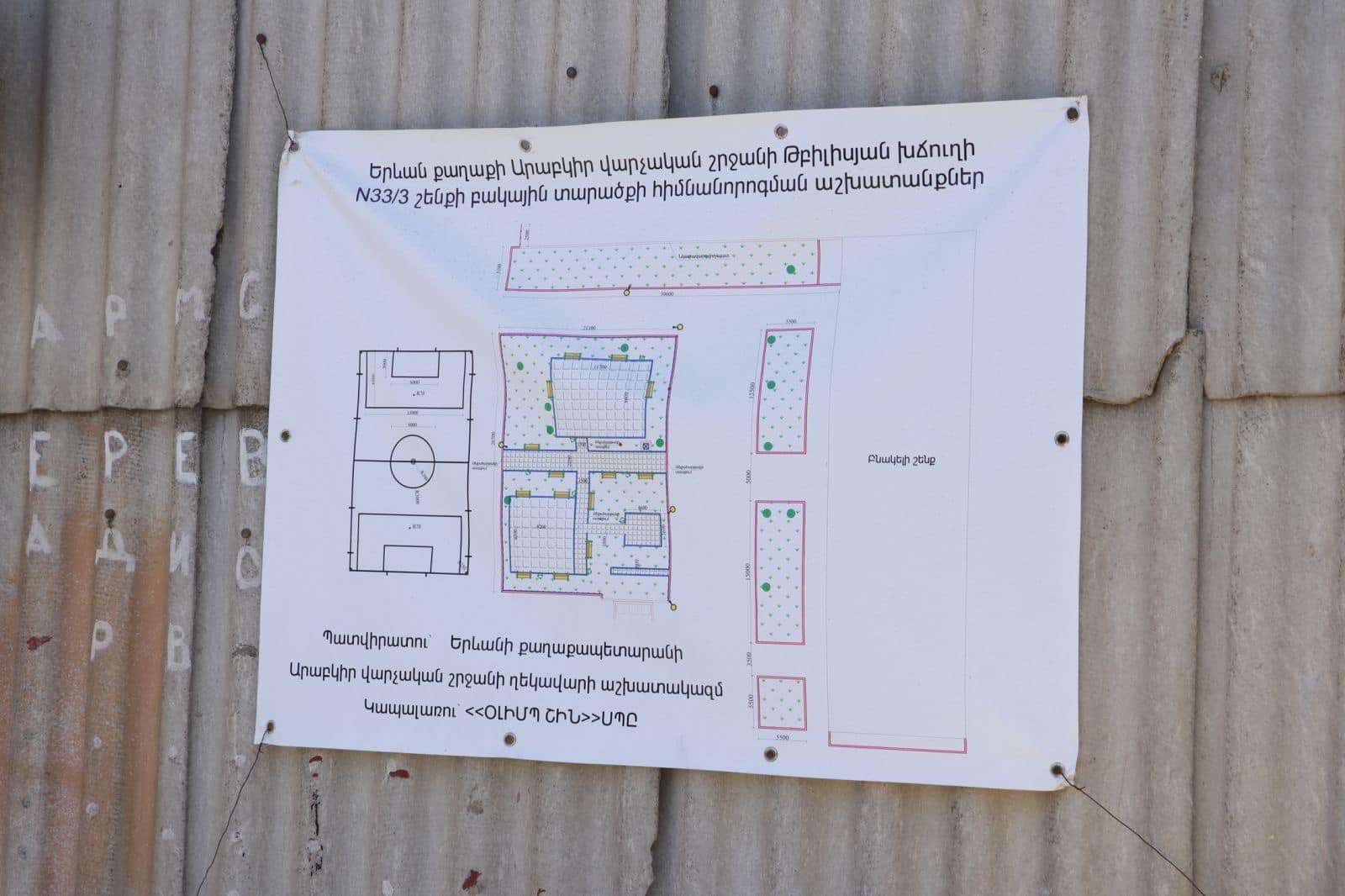 Թբիլիսյան խճուղի 33/3 հասցեում հանդիպել եմ տեղի բնակիչների հետ, լսել նրանց կարծիքն ու առաջարկությունները: Այստեղ ավտոտնակների ապամոնտաժման արդյունքում կառուցում ենք հրաշալի խաղահրապարակ և կանաչապատ, նոր ծառերով հանգստի գոտի: