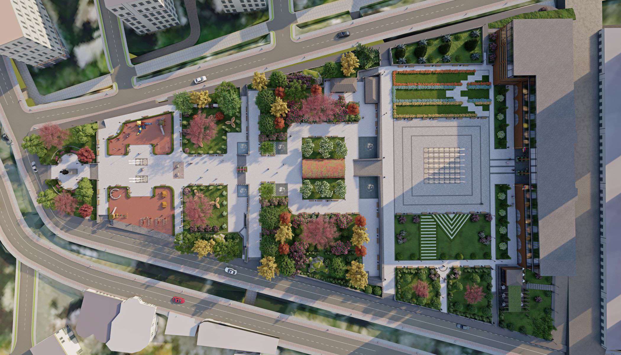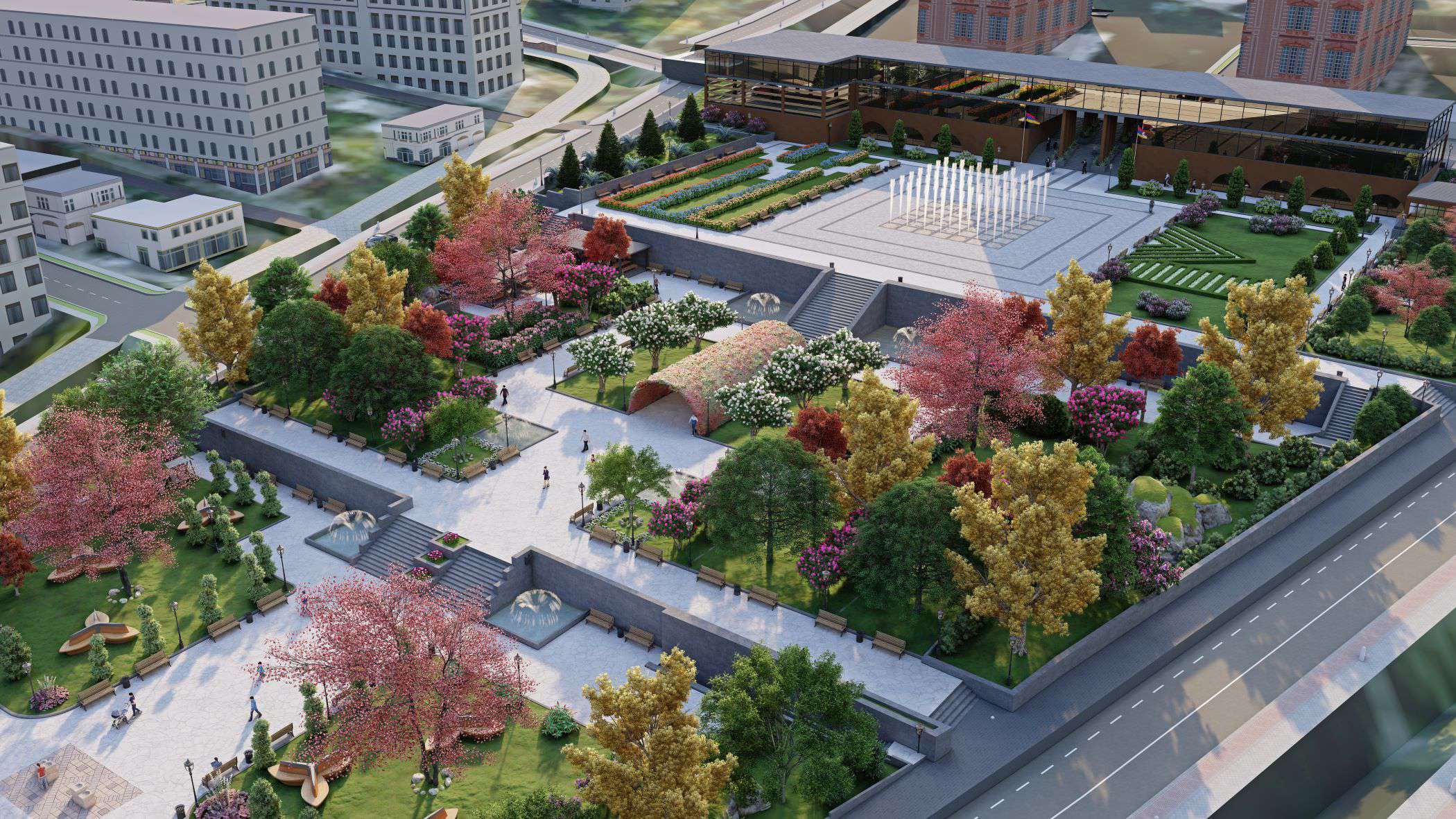 - Այգին կունենա տրավետինե սալիկներով ճեմուղի՝ մոտ 270 քմ մակերեսով։
