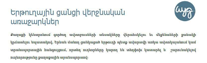 Այդ հաղորդագրության մեջ բովանդակային առումով նշվում է հետևյալը․ «Ինչ վերաբերում է մարզային ուղևորափոխադրողներին, ապա այստեղ մեկ այլ գլոբալ խնդիր ունենք, քանի որ այսօր այդ ուղևորափոխադրողները ուղևորներին հասցնում են մինչև Երևանի կենտրոնական հատվածներ, ինչն այդքան էլ ճիշտ մոտեցում չէ։ Ճիշտ մոտեցումն այն է, որ միջմարզային ուղևորափոխադրում իրականացնող տրանսպորտը պետք է կանգնի ավտոկայանում, որտեղից ուղևորն արդեն օգտվի Երևանի ներքաղաքային տրանսպորտից»։