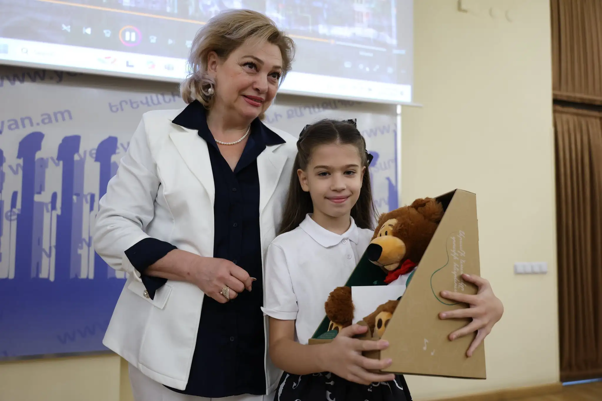 Շնորհավորելով քաղաքի տոնի առթիվ՝ Երևանի քաղաքապետի տեղակալ Սարգիս Մադաթյանը, Երևանի ավագանու անդամներ Արևիկ Բլեջյանցը, Քրիստինե Վարդանյանն ու Երեխաների և սոցիալական պաշտպանության վարչության պետի ժ/պ Գևորգ Ղարիբյանը երեխաներին խրախուսական նվերներ են հանձնել:
