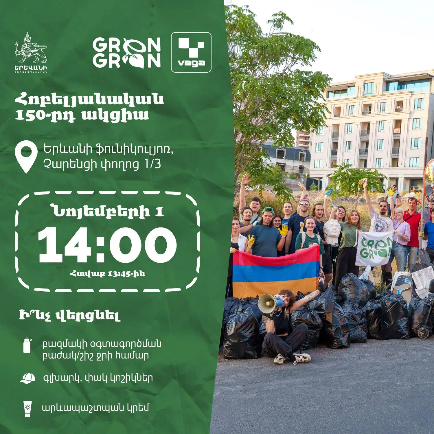 Երևանի քաղաքապետարանը նոյեմբերի 1-ին, ժամը 14:00-ին հրավիրում է մասնակցելու Green Green-ի հոբելյանական շաբաթօրյակին: