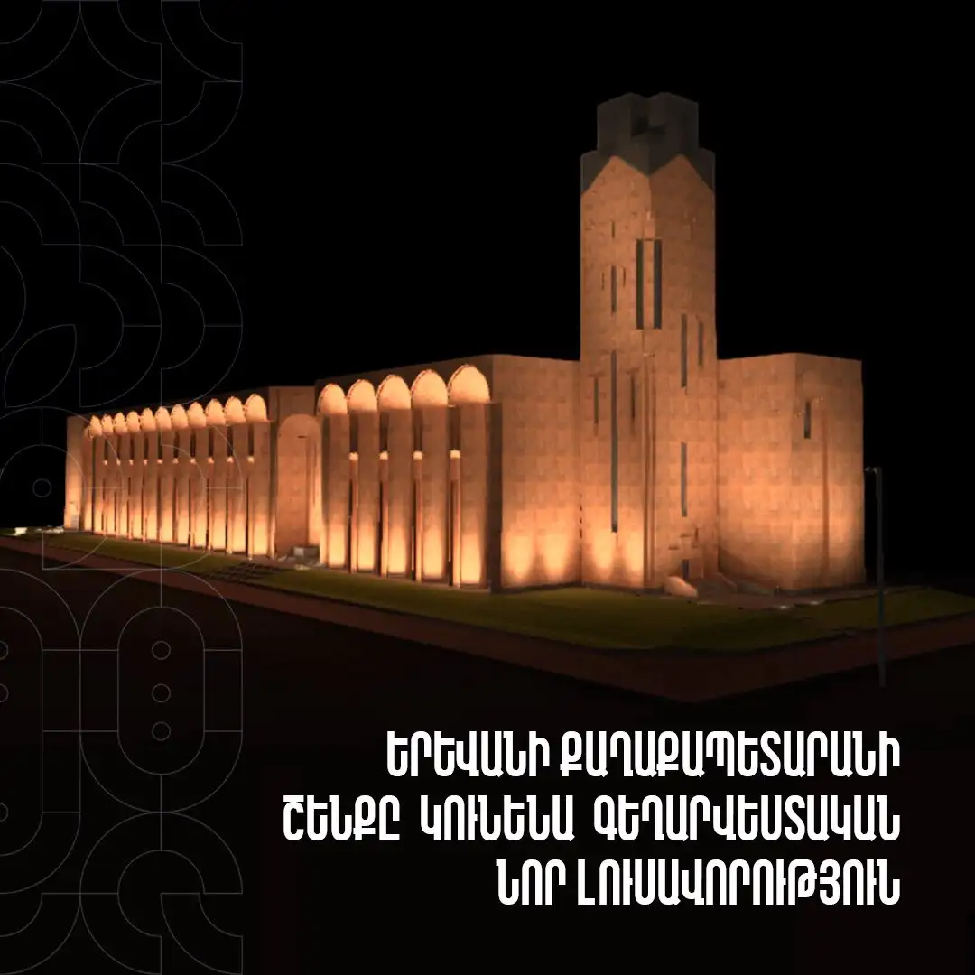 Երևանի քաղաքապետարանի շենքը կունենա գեղարվեստական նոր լուսավորություն. նատրիումային լամպերը կփոխարինվեն նոր LED լուսարձակներով. հայտնում են Երևանի քաղաքապետարանից։