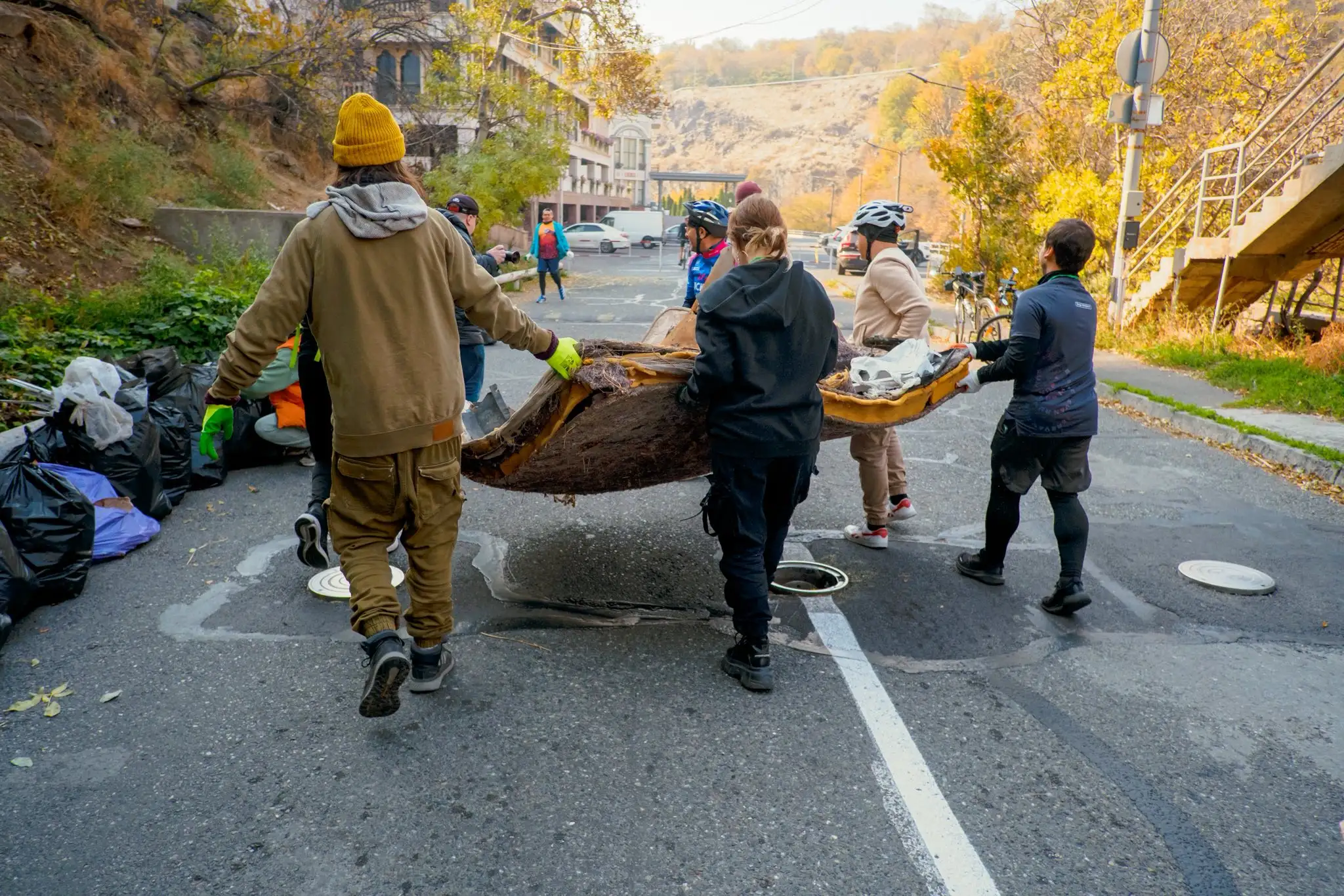 Մասնակիցները ոչ միայն հավաքում էին աղբը, այլ միաժամանակ վազում կամ հեծանիվ էին վարում Հրազդանի կիրճի ամբողջ երկայնքով: