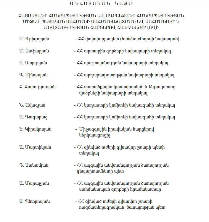 1. Создать Комиссию по демаркации и охране государственной границы Республики Армения.