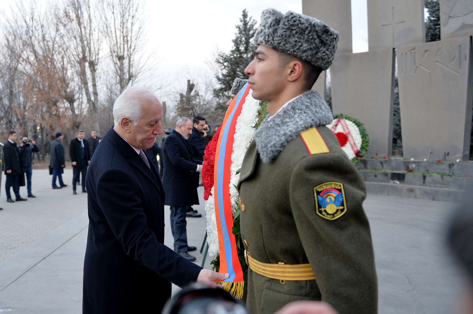 По случаю 31-й годовщины образования Вооруженных Сил Республики Армения Президент Ваагн Хачатурян вместе с Премьер-министром Николом Пашиняном, Председателем Национального Собрания Аленом Симоняном и в сопровождении высшего руководства Республики посетили воинский пантеон Ераблур, чтобы отдать дань памяти павшим за защиту Родины.