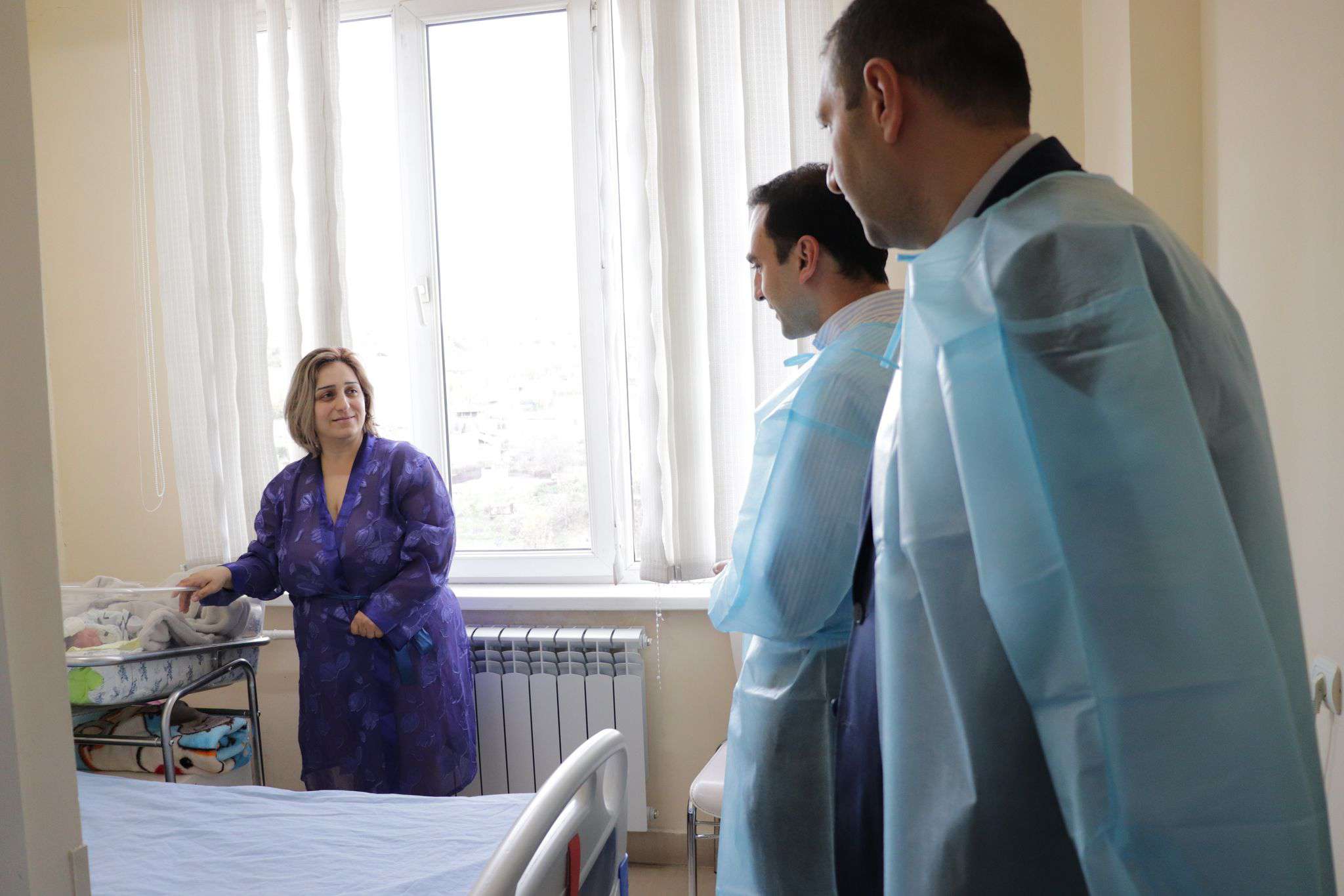 По случаю Дня материнства и красоты заместитель министра здравоохранения Артак Джумаян и заместитель мэра Еревана Тигран Авинян посетили родильный дом Медицинского центра "Св. Григорий Просветитель".