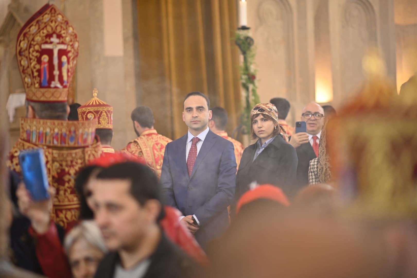 По случаю праздника в соборе Григория Просветителя была совершена патриаршая литургия Святого Воскресения.