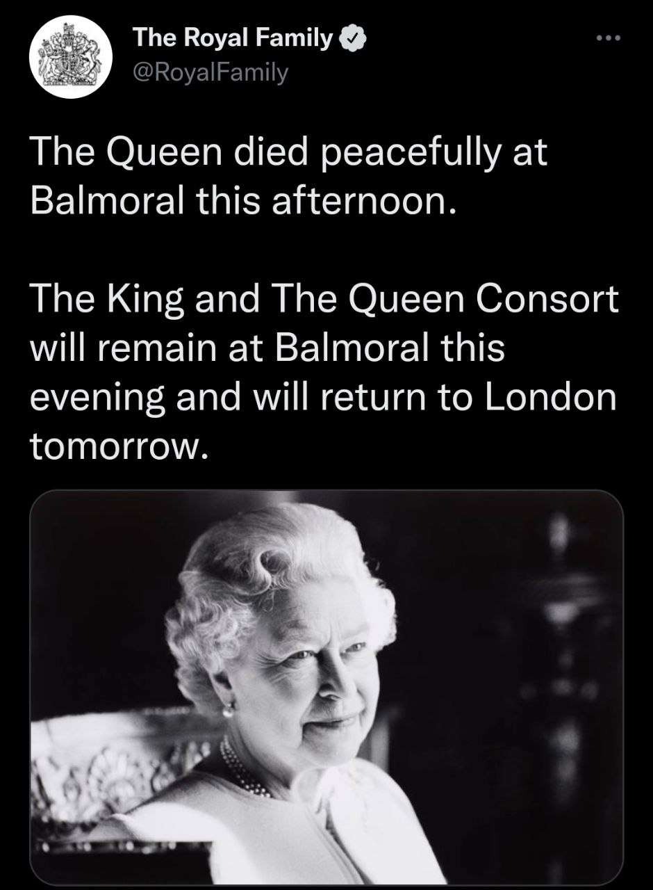 Королеве Елизавете II было 96 лет. Королева находилась в Шотландии в своем дворце Балморал в окружении членов семьи.
