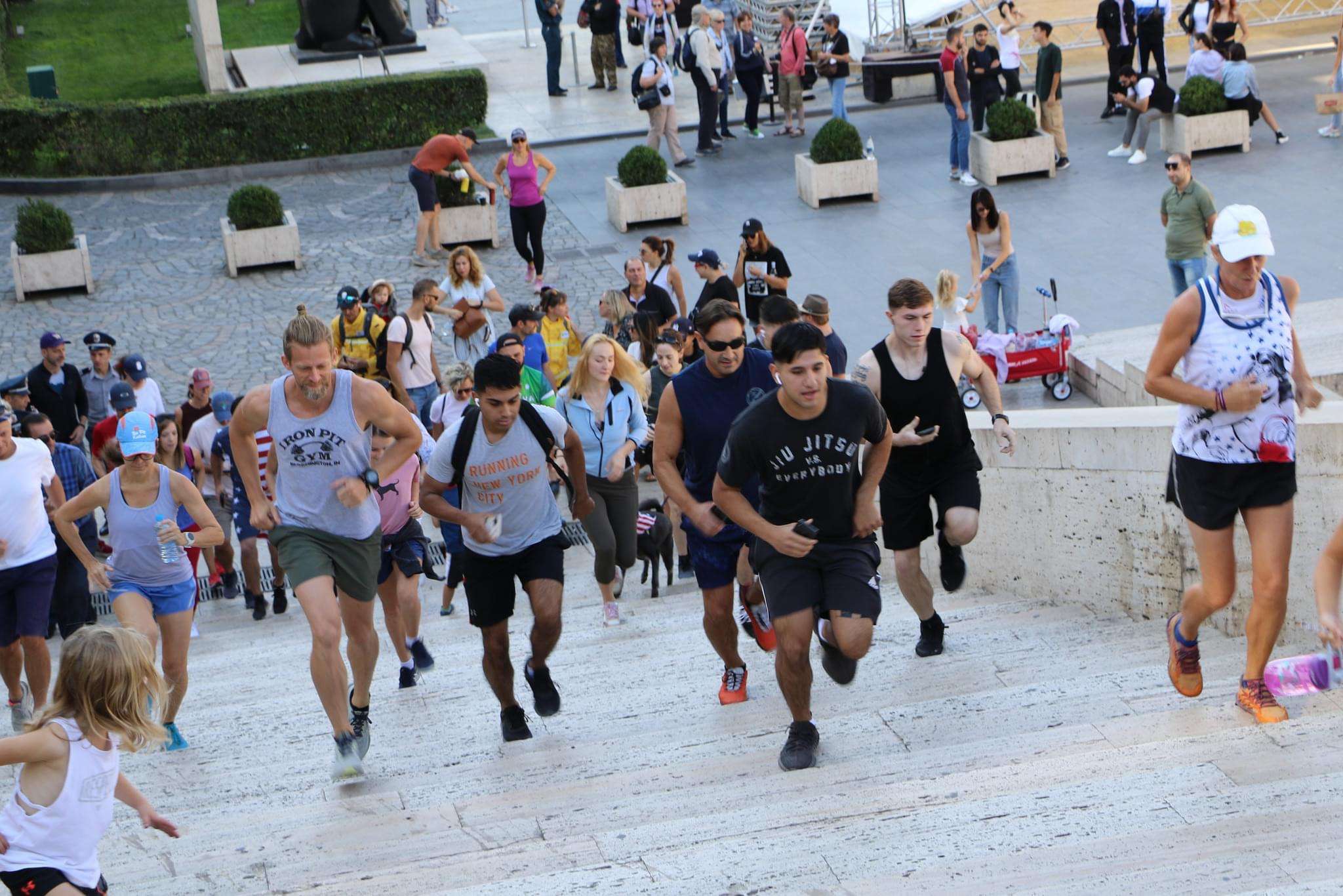 Чтобы отдать дань уважения жертвам 11 сентября и погибшим в ходе спасательных работ, сотрудники посольства США вместе со своими родственниками и друзьями прошли маршем по ступеням Каскада в центре Еревана, пройдя расстояние, эквивалентную высоты башен-близнецов Всемирного торгового центра или 110-этажного дома.